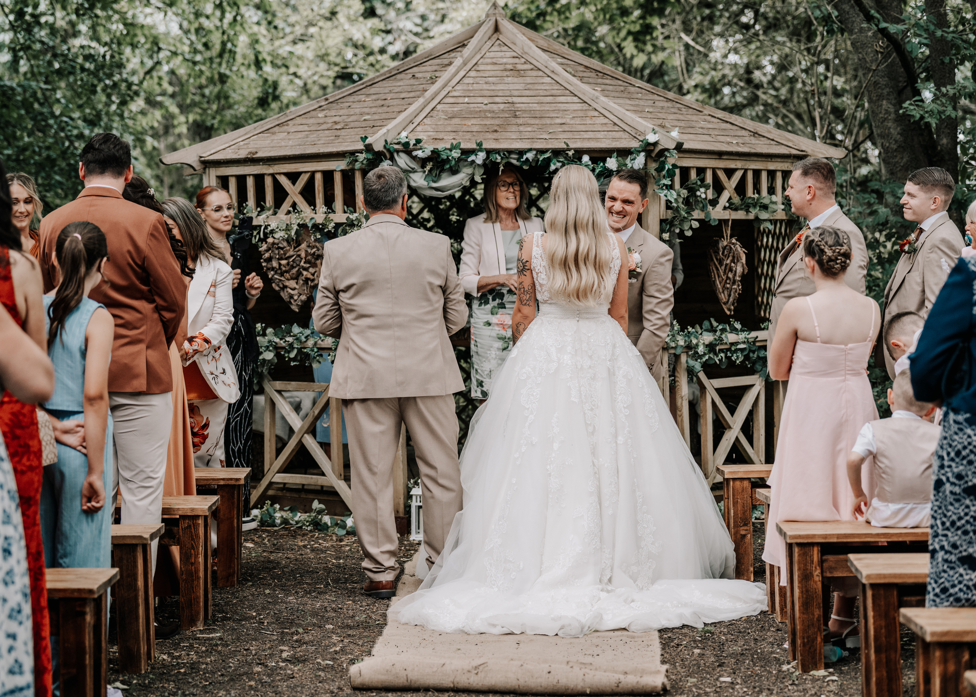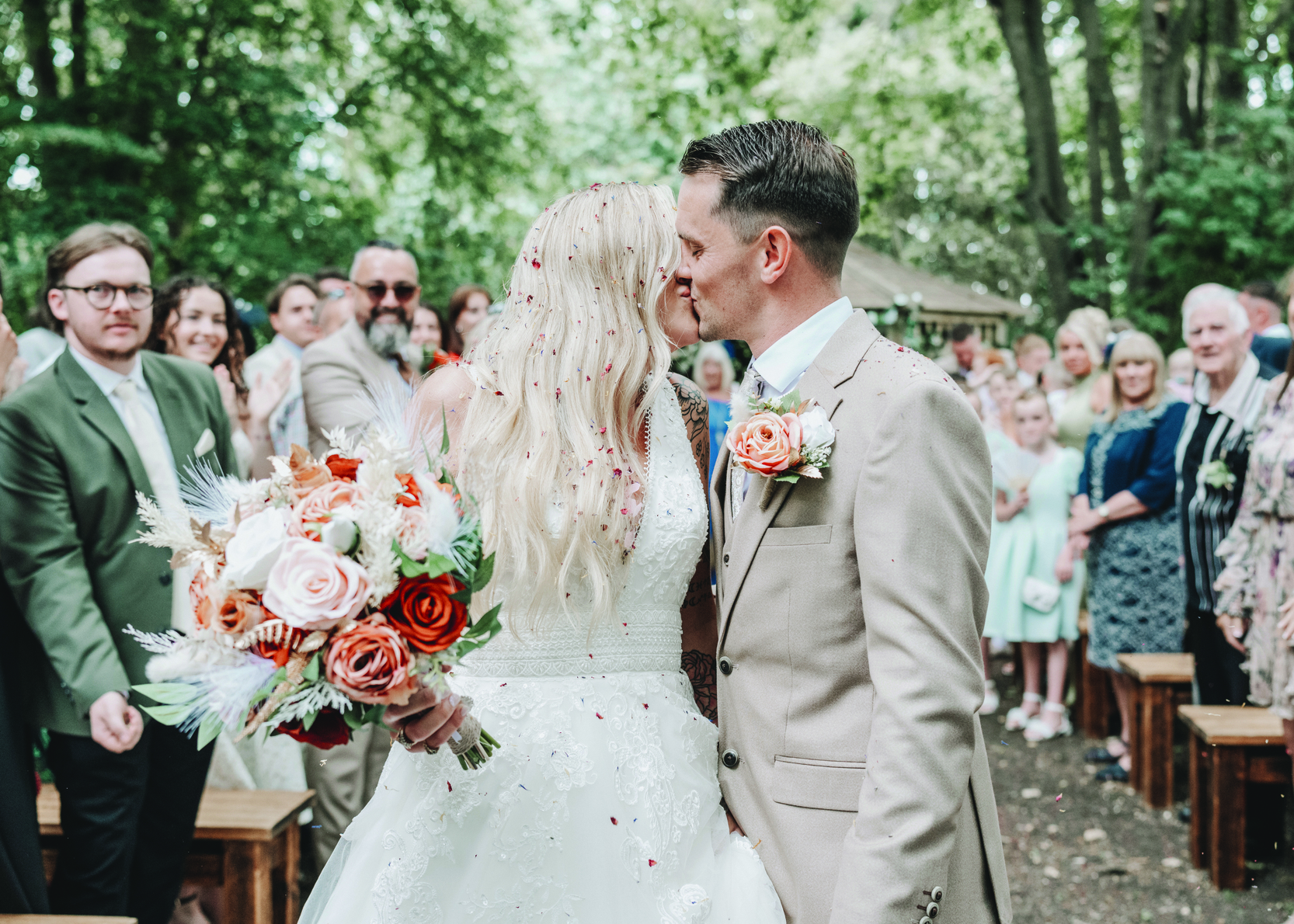 When the wedding day arrived, it unfolded in a setting that felt like a dream. Newland Hall in England was the venue Alex and Tommy had always said would be theirs if they ever married. For Tommy, it held memories of days spent fishing. For Alex, it offered something enchanted: a woodland sanctuary that spoke to her soul. “I always wanted to get married in the woods, like in the movie Twilight,” she says. “I love that vibe, so I was immediately excited.” The first time they walked the grounds, it felt perfect – quaint, intimate and deeply personal. The towering trees framed the day like nature’s cathedral, their leaves whispering blessings as Alex made her way down the aisle. Sunlight filtered through the canopy in golden threads, and for a moment, time seemed to hold its breath.