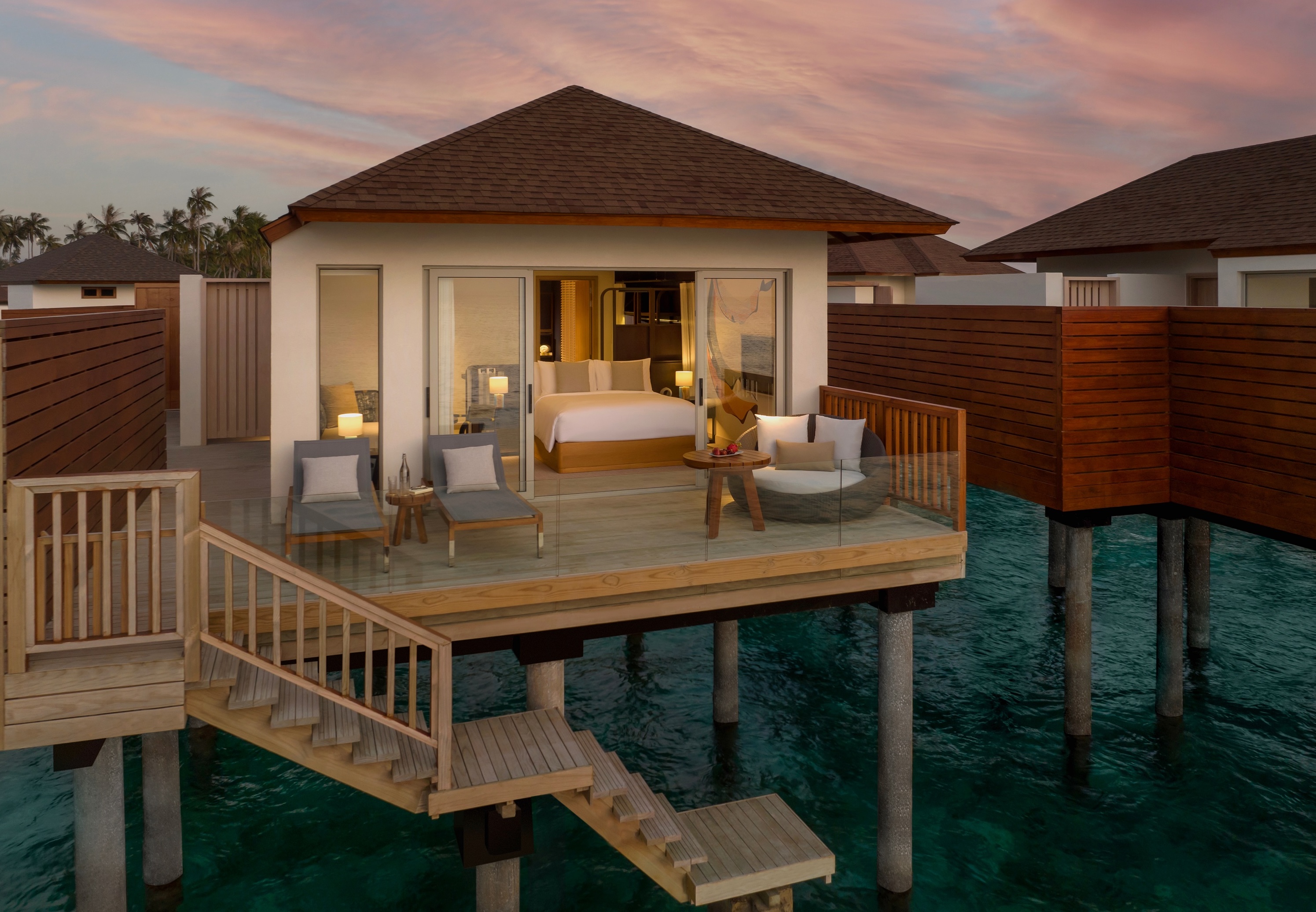 Couples can wake up to the gentle lull of the waves, spend afternoons in a hammock suspended over the ocean, and end the day with a starlit soak in their infinity pool. Dining is equally dreamy, from grilled seafood feasts by the shore to Japanese teppanyaki under the night sky.