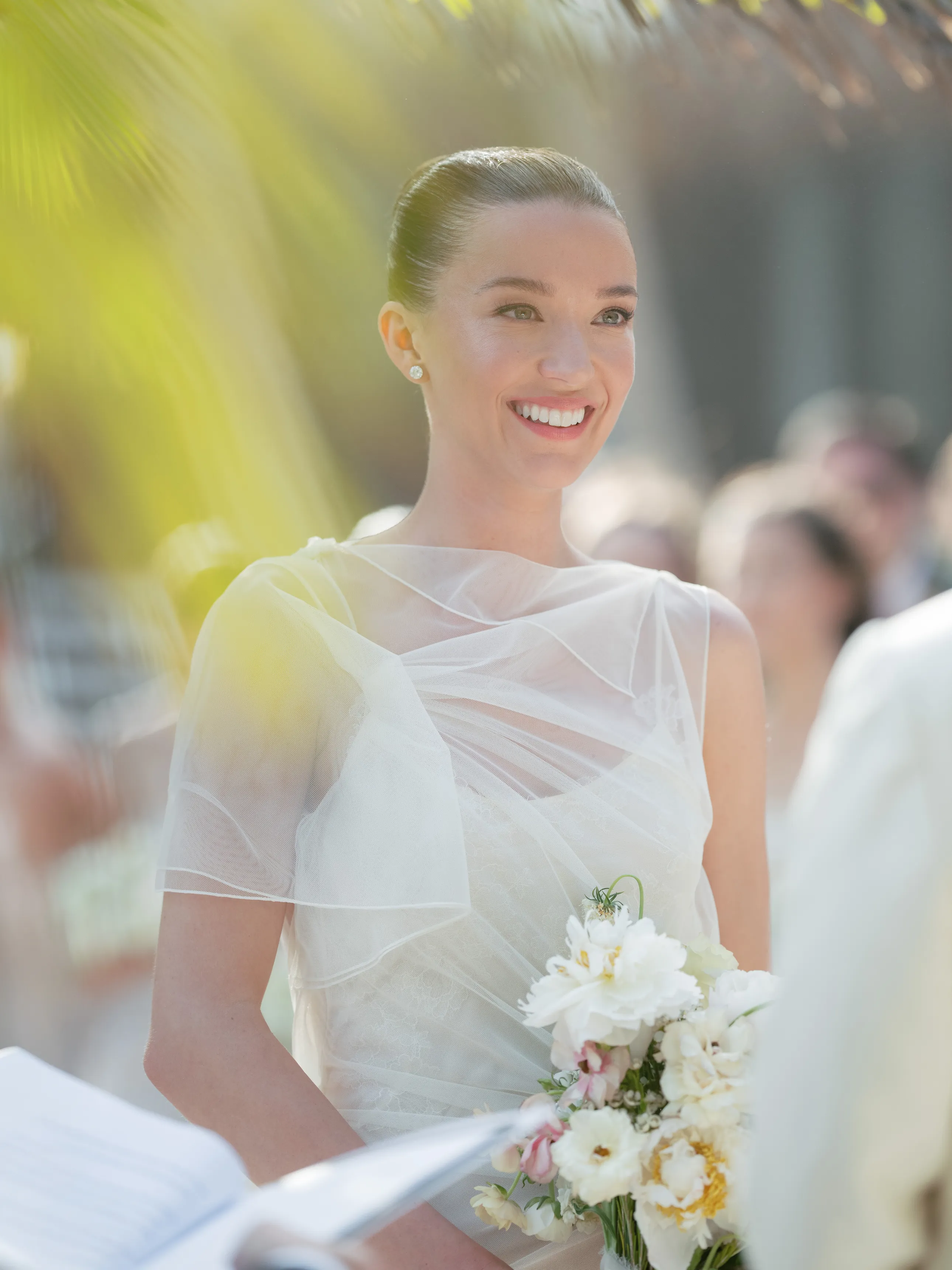 As Nicole made her way down the aisle accompanied by her stepfather to a heartfelt rendition of Moon River performed by her sister, the air was filled with emotion. The bride was a vision of timeless elegance, swathed in a bespoke ivory gown designed by Victoria Beckham, complemented by Manolo Blahnik sandals. The groom radiated sophistication in a striking ensemble by Ralph Lauren; he donned a cream single-button jacket paired with a classic white shirt, a refined black bow tie and sleek black tuxedo trousers.