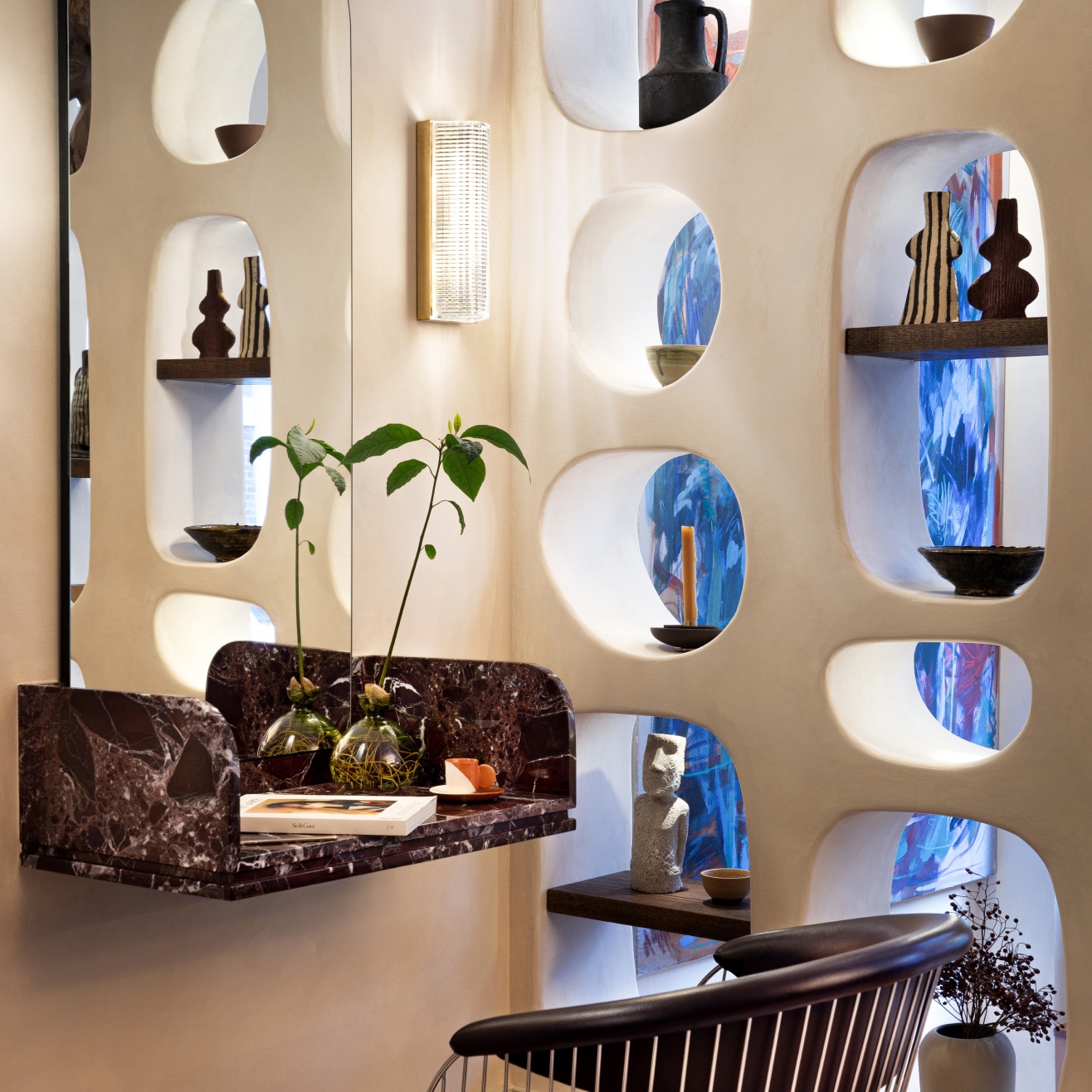 Please tell us about your salon in Chelsea, and the inspiration behind its gorgeous décor: Designed by Design & That Studio, our salon transcends mere functionality, boasting an ambiance reminiscent of a contemporary art gallery. From the sleek lines of our minimalist reception area to the spaces that illuminate our styling stations, every detail is meticulously curated to evoke a sense of luxury and refinement. Designed to inspire and elevate, our space merges form and function seamlessly, offering a sanctuary for beauty enthusiasts and design aficionados alike. As you explore our salon, prepare to be captivated by the interplay of textures, materials and geometric shapes that define the space. Every angle reveals a new perspective, inviting guests to appreciate the artistry and craftsmanship that went into its creation.