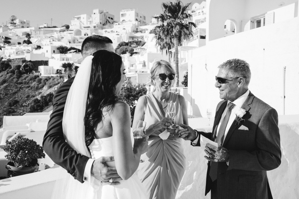 “After the ceremony, we had canapés and celebration drinks with my mum and dad. I just remember standing there with them in absolute awe. I never thought I would be standing on the other side of the world in Santorini with my husband, and my parents. It was so special to share the day with them…I’m so glad they ended up being there. It wouldn’t have been the same without them.”