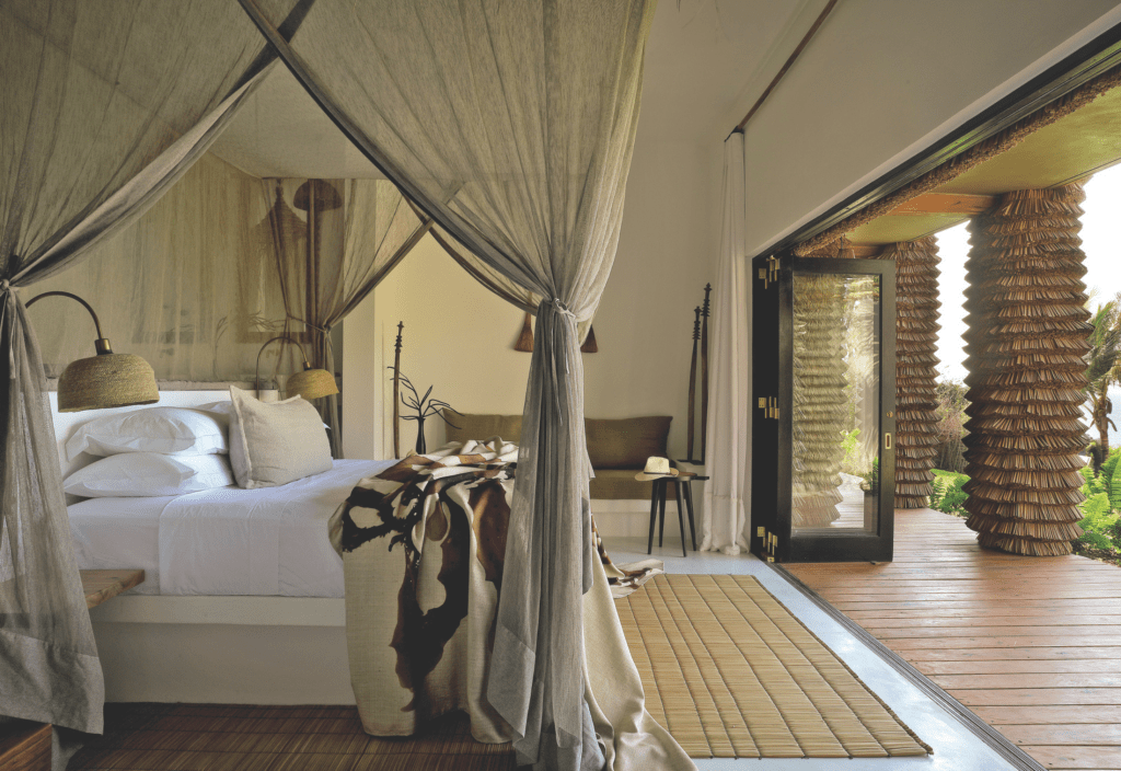 Our room faced the sea. The bed was draped in white netting, and the entire space was textured and tactile. Woven baskets tucked neatly under benches, carved wood, soft cotton throws and smooth floors underfoot – everything had been chosen with care and nothing felt excessive; everything felt deliberate. I stood by the shuttered windows watching as the fishermen pulled in their nets.