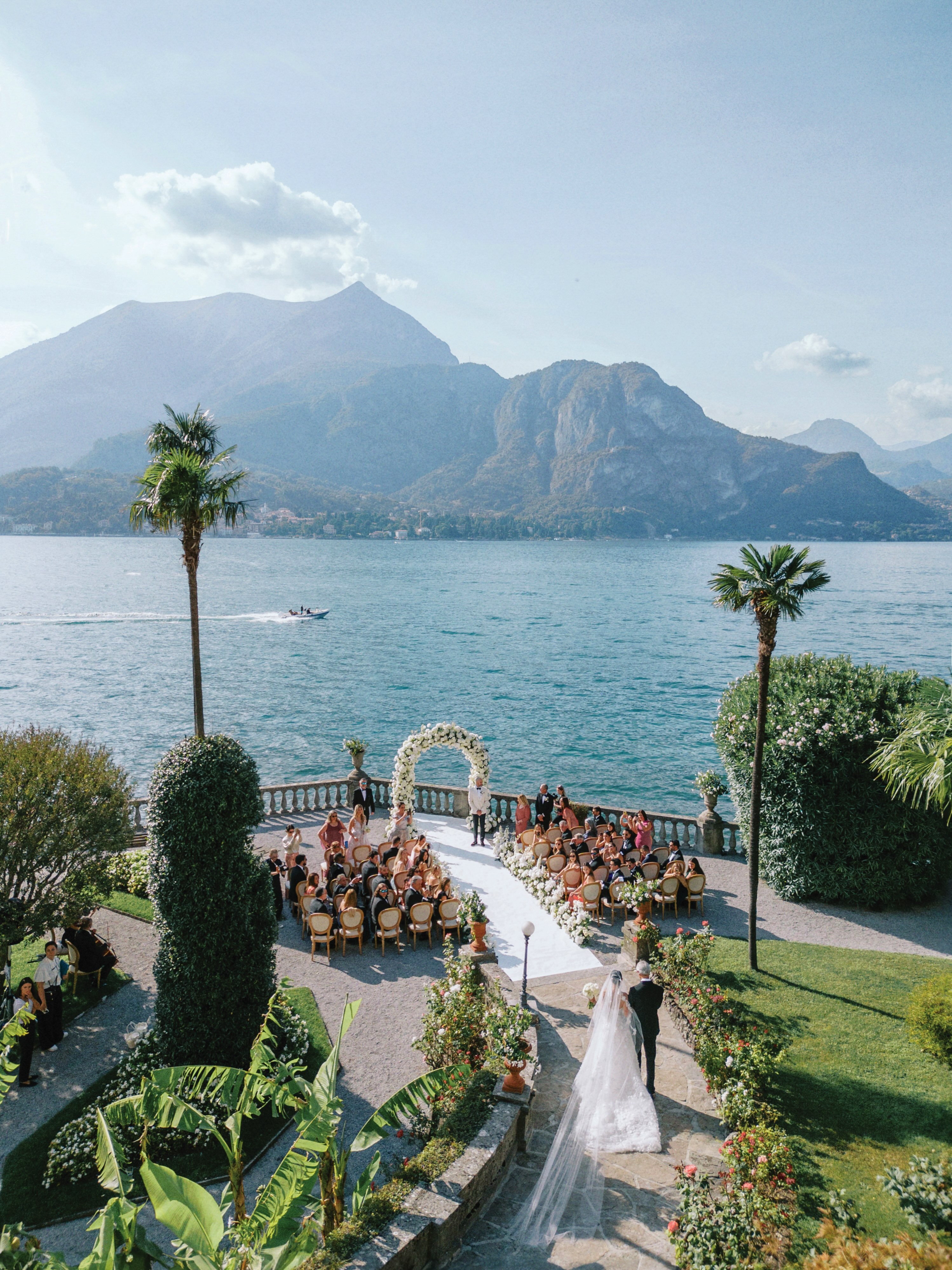 Beyond the villa’s doors, manicured gardens cascade toward the water’s edge, offering panoramic views that seem almost unreal in their beauty. Ceremonies on the terrace feel kissed by the sun; receptions in the gardens become evening reveries framed by mountains, water and starlit skies.