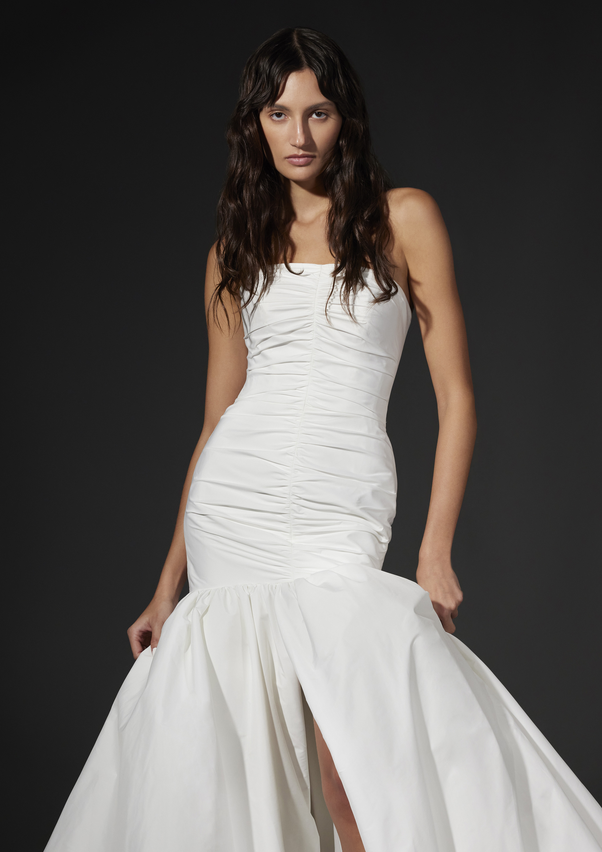 Her design vernacular is articulated through artful combinations, relaxed silhouettes, and subtle-yet-delightful flourishes. The element of surprise that Wang so deftly incorporates is evident in everything she puts her name to. Through her distinctly contemporary style, she resonates with millions of consumers worldwide, inspiring them to explore and express their own individuality. Her latest collection for Pronovias underscores this ethos.