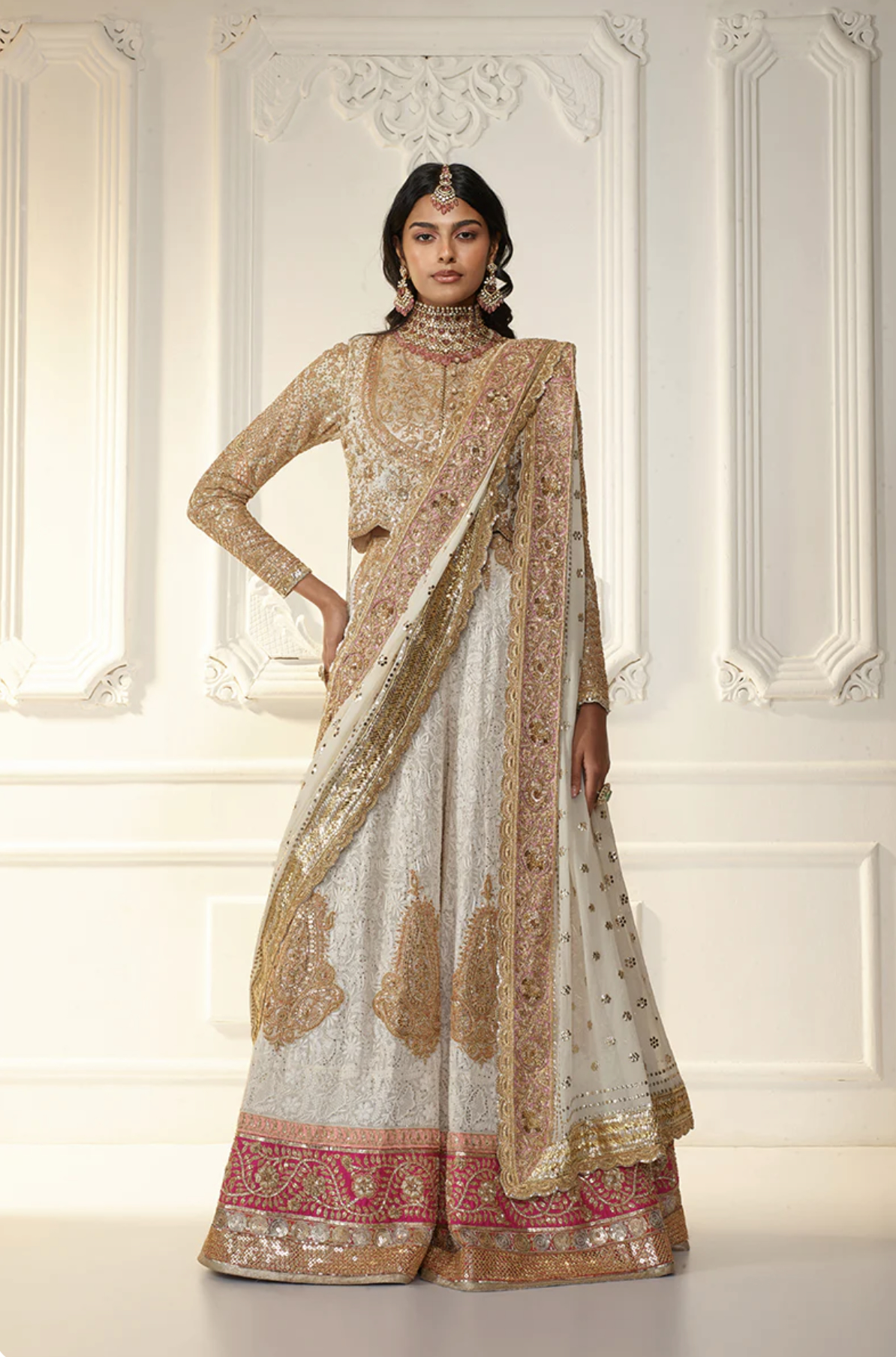 For women, the sari is a timeless symbol of elegance and an undeniably beautiful choice, though its intricate drape can feel challenging for first-time wearers. A lehenga offers a more approachable alternative. Typically comprised of a long skirt, fitted blouse and coordinating dupatta, it delivers a ceremonial look while allowing greater ease of movement during long celebrations.